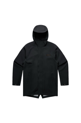 Designed with a structured hood, waterproof zips, dome closures and a yoke vent for airflow, this coat balances full protection with breathable comfort. Finished with clean NVYSKN detailing. Optional Black Union Jack.