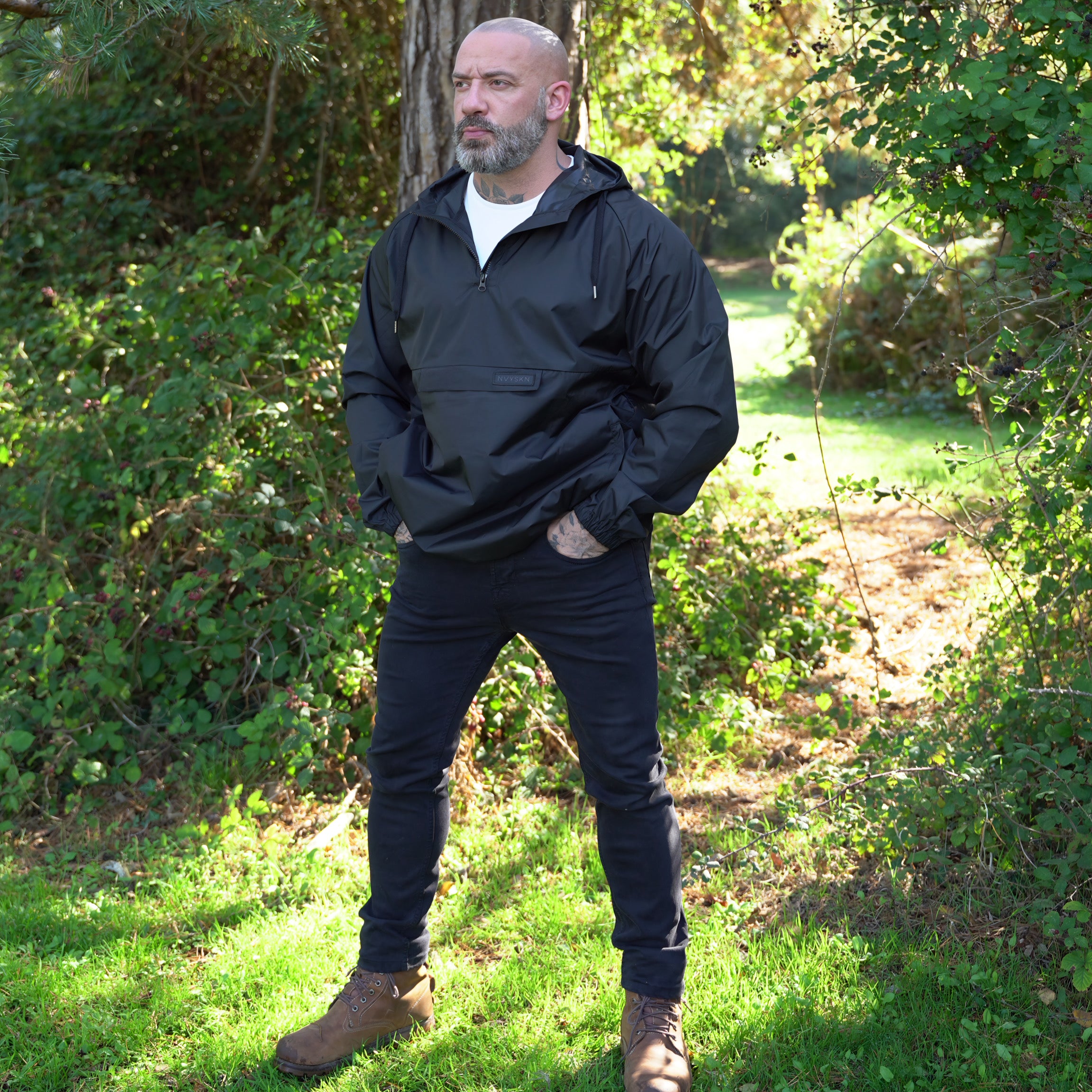 Regular fit, adjustable hem drawcord, and headphone port-ready. Invisible pockets, and clean NVYSKN detailing for a modern, military look.